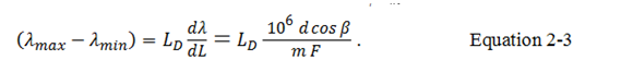 這給在納米/毫米條款線性色散。 從線性分散體中,最大光譜范圍(λ最大- λ 分鐘)可基于所述檢測器的長度(L D),其可以通過檢測器(n)的由像素寬度的總像素數的相乘進行計算來計算(W p)的產生中的表達: