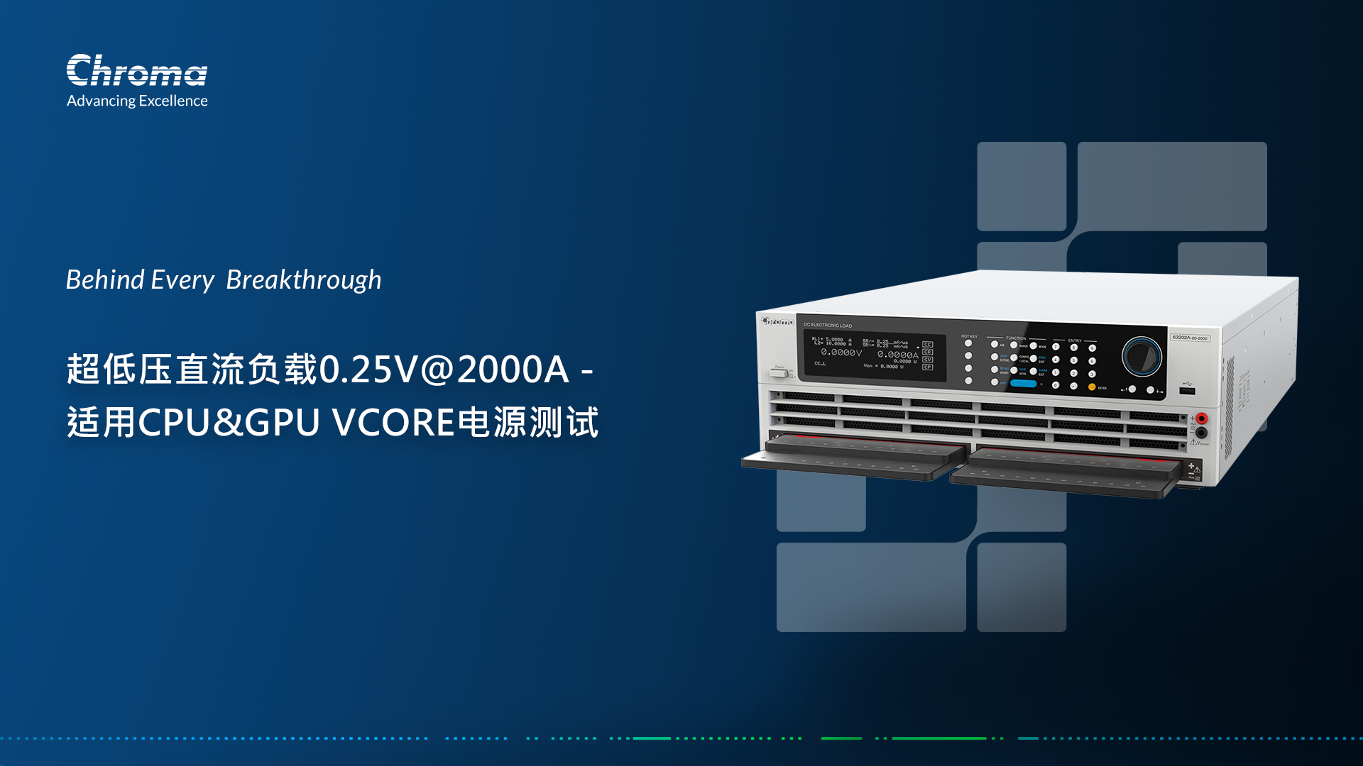 Chroma推出超低壓直流電子負載,針對CPU和GPU的電源測試而設計??刹僮鞯碾妷悍秶鸀?-20V,額定功率為2kW,電流規(guī)格提供1,000A和2,000A兩種。因為CPU及GPU電源的輸出電壓很低,為改善無法順利拉載的問題,Chroma 63202A-20-2000電子負載獨特的設計,可以在電壓低至0.25V的條件下,實現(xiàn)2,000A的拉載能力,且即便在低于工作電壓0.25V至0V區(qū)間,仍能持續(xù)拉載,確保電子負載可以仿真真實的工作條件,此一能力對測試和驗證GPU電源尤為重要。