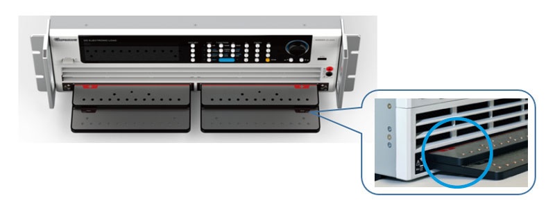 此外,Chroma 63202A-20-2000超低壓直流電子負載特殊的前銅排端子設計,除了方便使用者接線外,左右兩邊銅排相通,并在正負銅排之間增加絕緣飾板以避免短路,還提供多孔鎖附點。此設計提供了低感量連接,對提升負載動態(tài)載響應速度有著顯著幫助,使電子負載在0.5V時電流斜率可以達到60A/us。另外Chroma提供選購的負載連接線,特殊設計有超低的自感量,有效改善動態(tài)電流測試產(chǎn)生的電壓降或電流過沖的問題。
